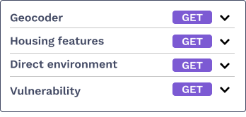 Our data access points are organised around typologies of climate risks & key dimensions of an adaptation project in response to your specific challenges (cross-scoring with your data, marketing targeting, etc.)