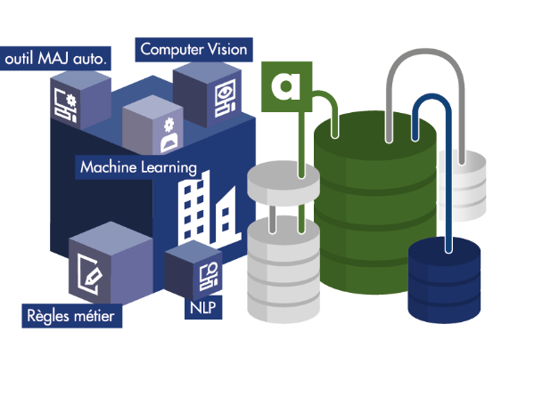 Des algorithmes complémentaires viennent permettre une jointure entre les attributs et les référentiels adresses-bâtiments.